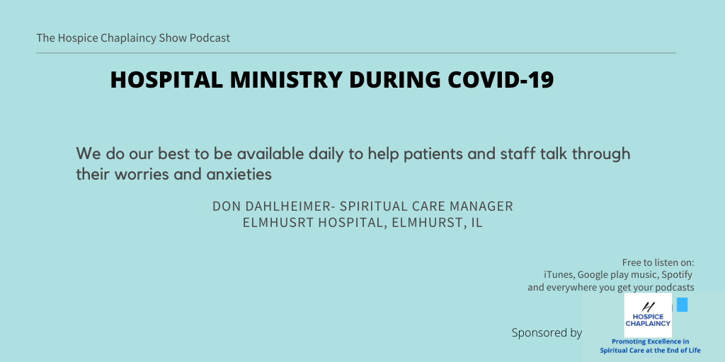 One of the hardest things about serious cases of COVID-19 is that people end up in the hospital in isolation and unable to be close to their loved ones. As the death toll mounts in the United States, hospital chaplains have become a much needed source of hope and solace. And some are supporting hospital staff as much as they are patients and families. On today’s episode we are joined by three members of the spiritual care department at Elmhurst Hospital in Elmhurst, IL. They are;